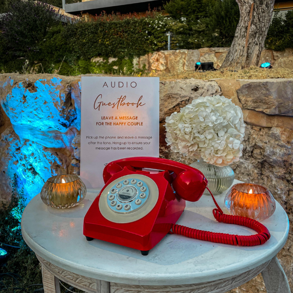 The Audio Guestbook is the best alternative to the guestbook for your event where guests pick up the phone and record a message giving their wishes.